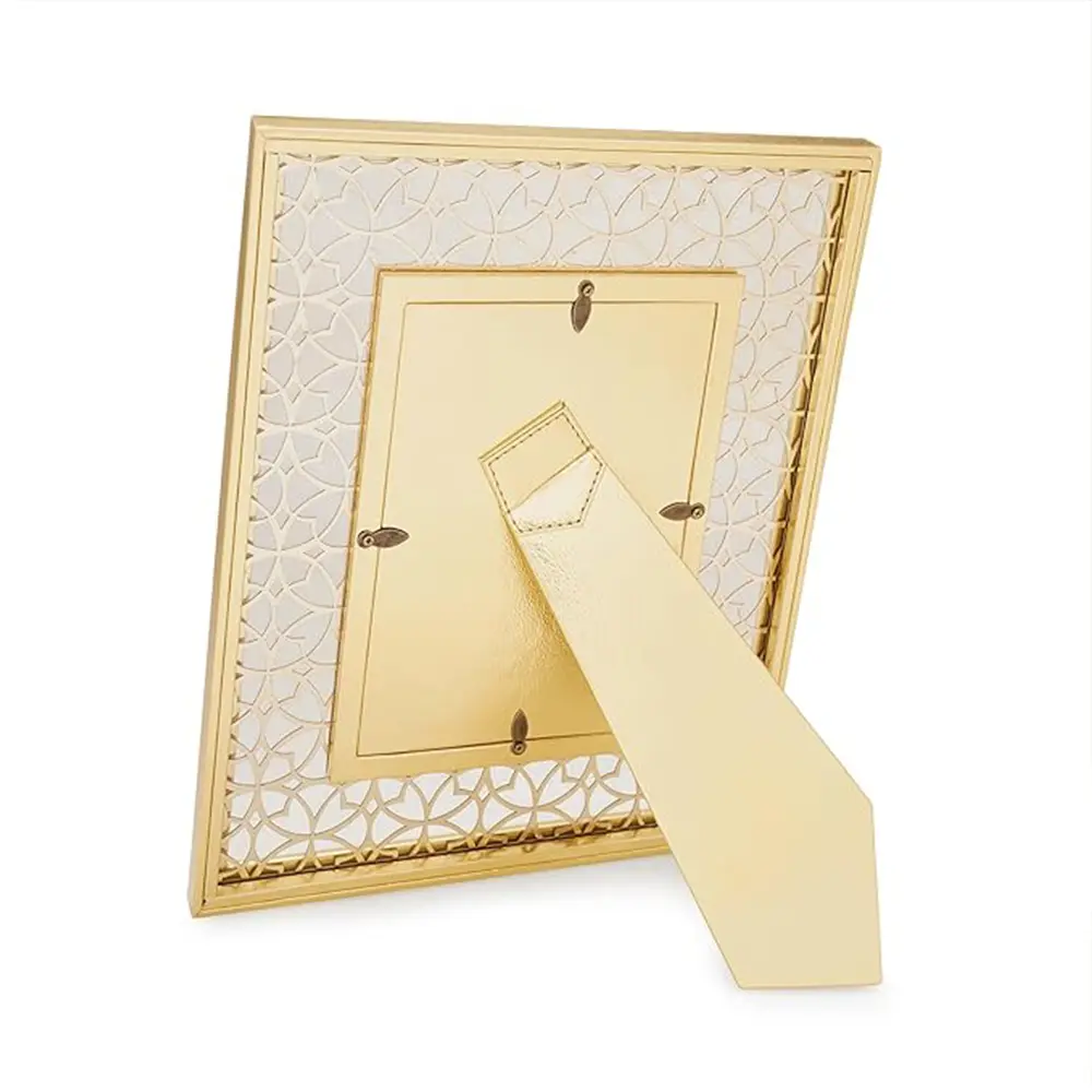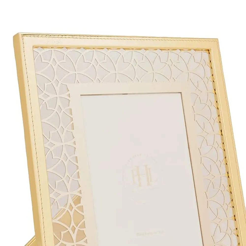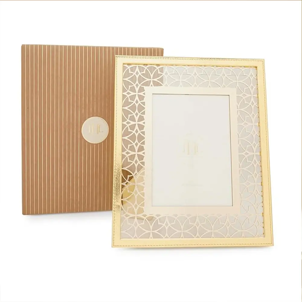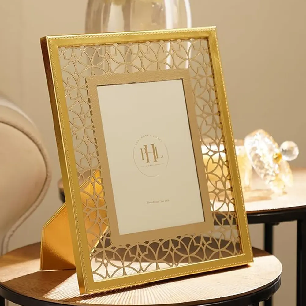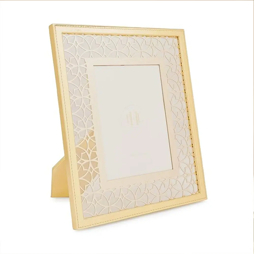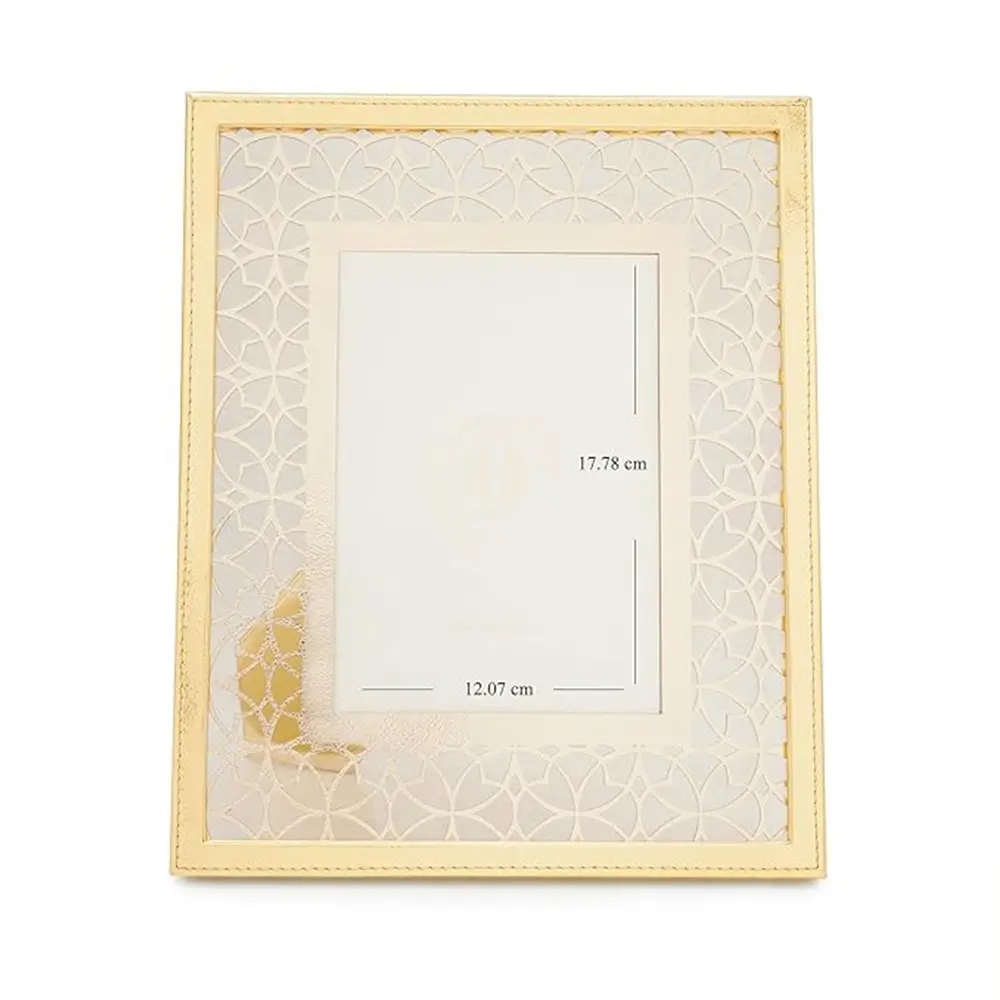 Elegant COOL ART 5×7″ Gold Laser Cut Faux Leather Photo Frame — perfect for tabletops, weddings, gifts, and stylish home décor.