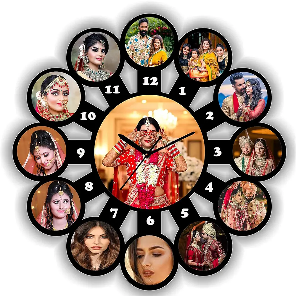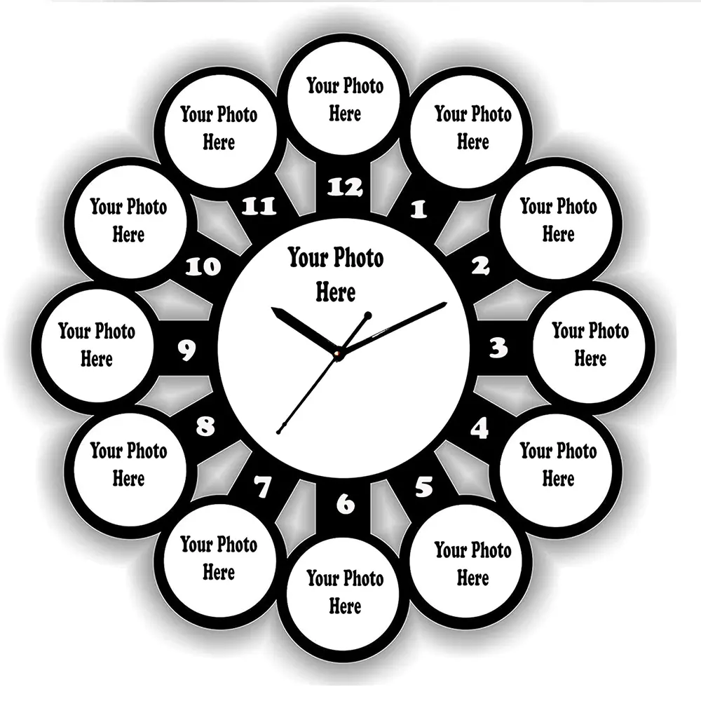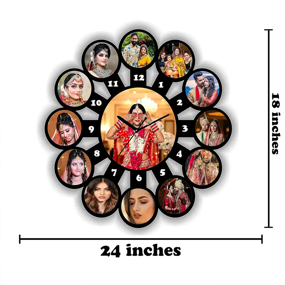 Personalized 13 Photo Clock for Wall Personalize your space with the COOL ART DREAMVIO 13 Photo Wall Clock. Crafted from premium MDF wood, this 18×18 inch black wall clock features 13 photo frames to showcase your favorite memories — a perfect blend of timekeeping and décor.